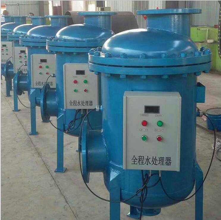 | 全程綜合水處理器主要由優(yōu)質(zhì)碳鋼筒體、特殊結(jié)構(gòu)的不銹鋼網(wǎng)、高頻電磁場發(fā)生器、電暈場發(fā)生器及排污裝置等組成。通過活性鐵質(zhì)濾膜,機(jī)械過濾器變徑孔阻擋及電暈效應(yīng)場三位一體的綜合過濾體,吸附、濃縮在實(shí)際運(yùn)行工況下各種水系統(tǒng)形成的硬度物質(zhì)及復(fù)合垢,降低其濃度,達(dá)到控制污垢及大部分硬度垢的目的。并通過換能器將特定頻率能量轉(zhuǎn)換給被處理的介質(zhì)——水,形成電磁極化水,使其成垢離子間的排列順序位置發(fā)生扭曲變形,當(dāng)水溫升高到一定程度時(shí),處理的水需經(jīng)過一段時(shí)間方能恢復(fù)到原來的狀態(tài)。在此階段,成垢的機(jī)率很底,因而達(dá)到控制形成硬度垢的目的。同時(shí)器壁金屬離子受到抑制,對無垢系統(tǒng)具有防腐蝕作用。此外,電磁極化水還可有效地殺滅水中的菌類、澡類等,有效地抑制水中微生物的繁殖。所以,全程綜合水處理器在系統(tǒng)正常運(yùn)行狀態(tài)下,可以完成防結(jié)垢、防腐,殺菌,滅藻,超凈過濾,控制水質(zhì)的綜合功能。